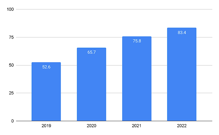 Figure 3: Number of Smartphone Users in the U.S. Scanning a QR Code, 2019 – 2022 (Millions) (Data Source: eMarketer)