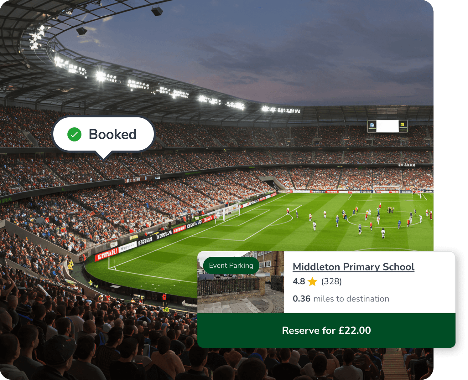 Schools, churches and local businesses near venues can monetise idle parking on event days with no parking additional infrastructure needed.