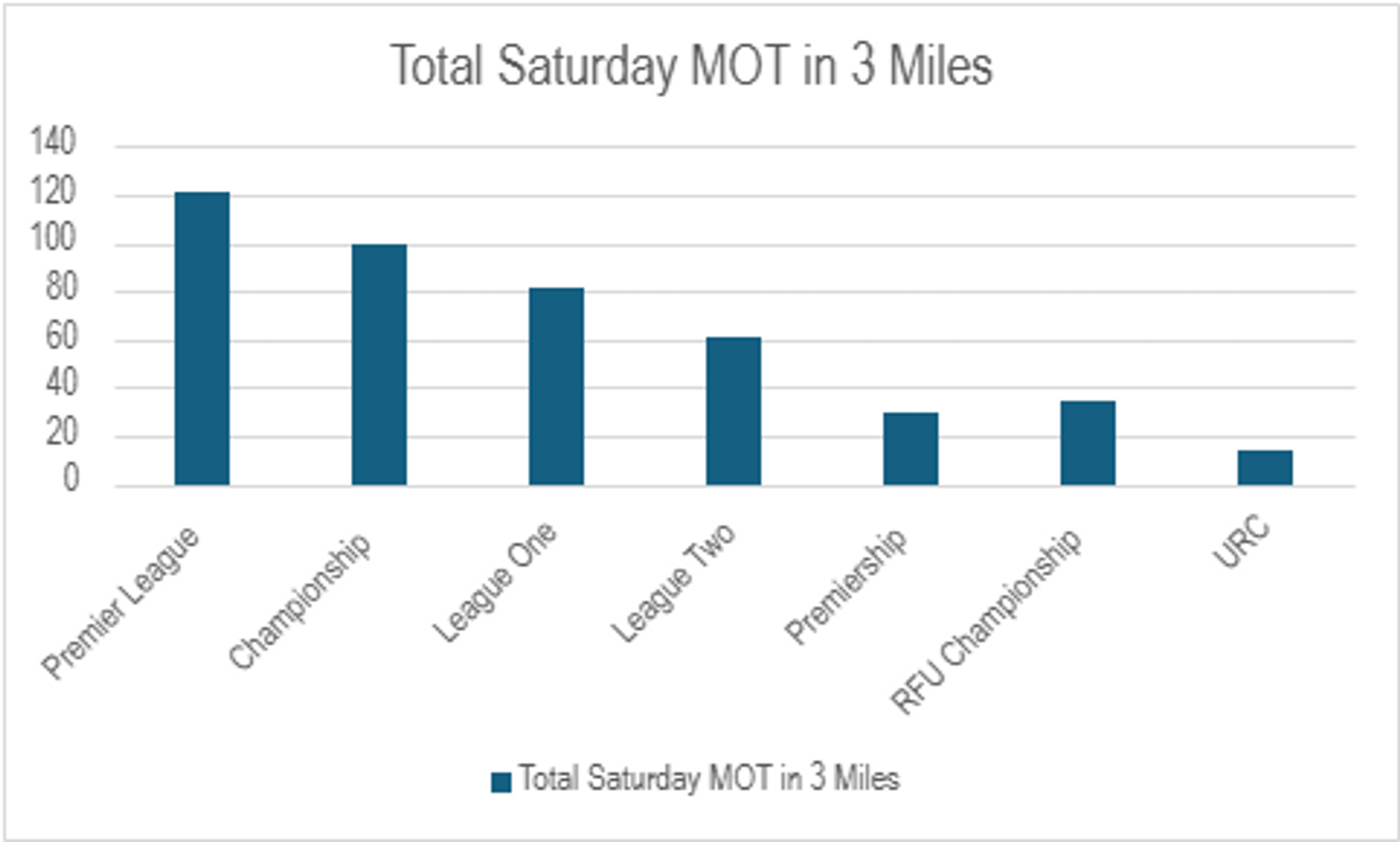 On average, there are a whopping 11 garages within 3 miles of Premier League grounds, with an average of 6.05 offering Saturday MOT appointments – almost a third more than the next best league!