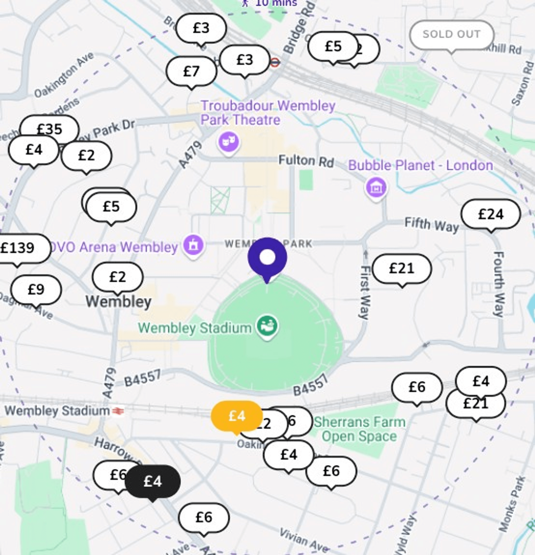 Some of our top-rated parking spaces near Wembley include: