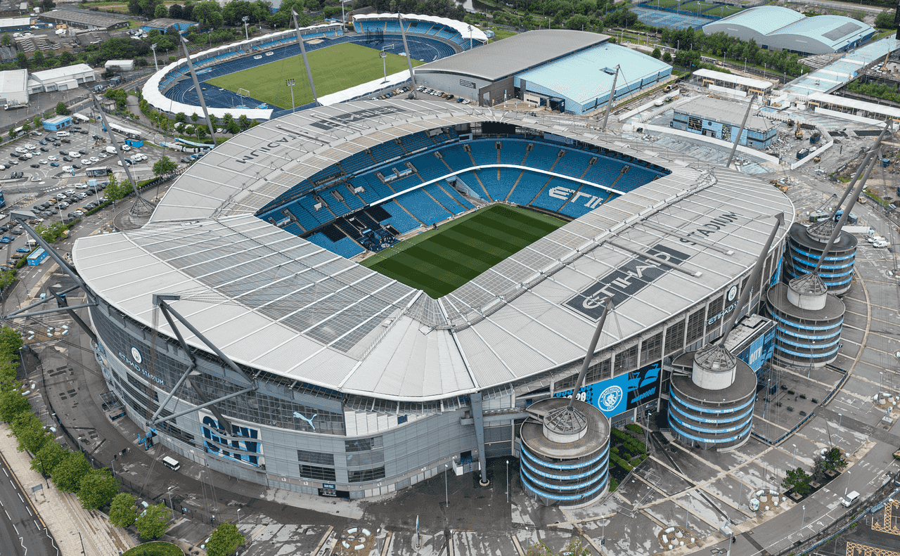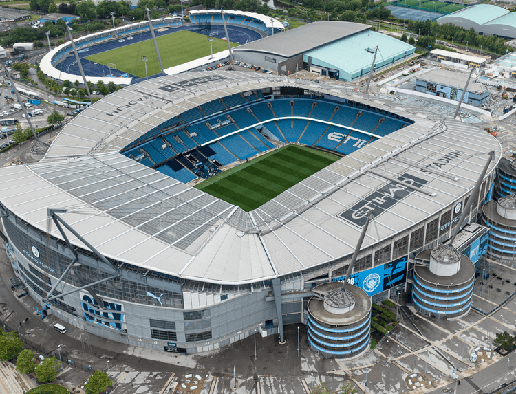 The Etihad Stadium is the home of Manchester City FC, located at the Etihad Campus in east Manchester — around a 25-minute walk from Manchester Piccadilly station.