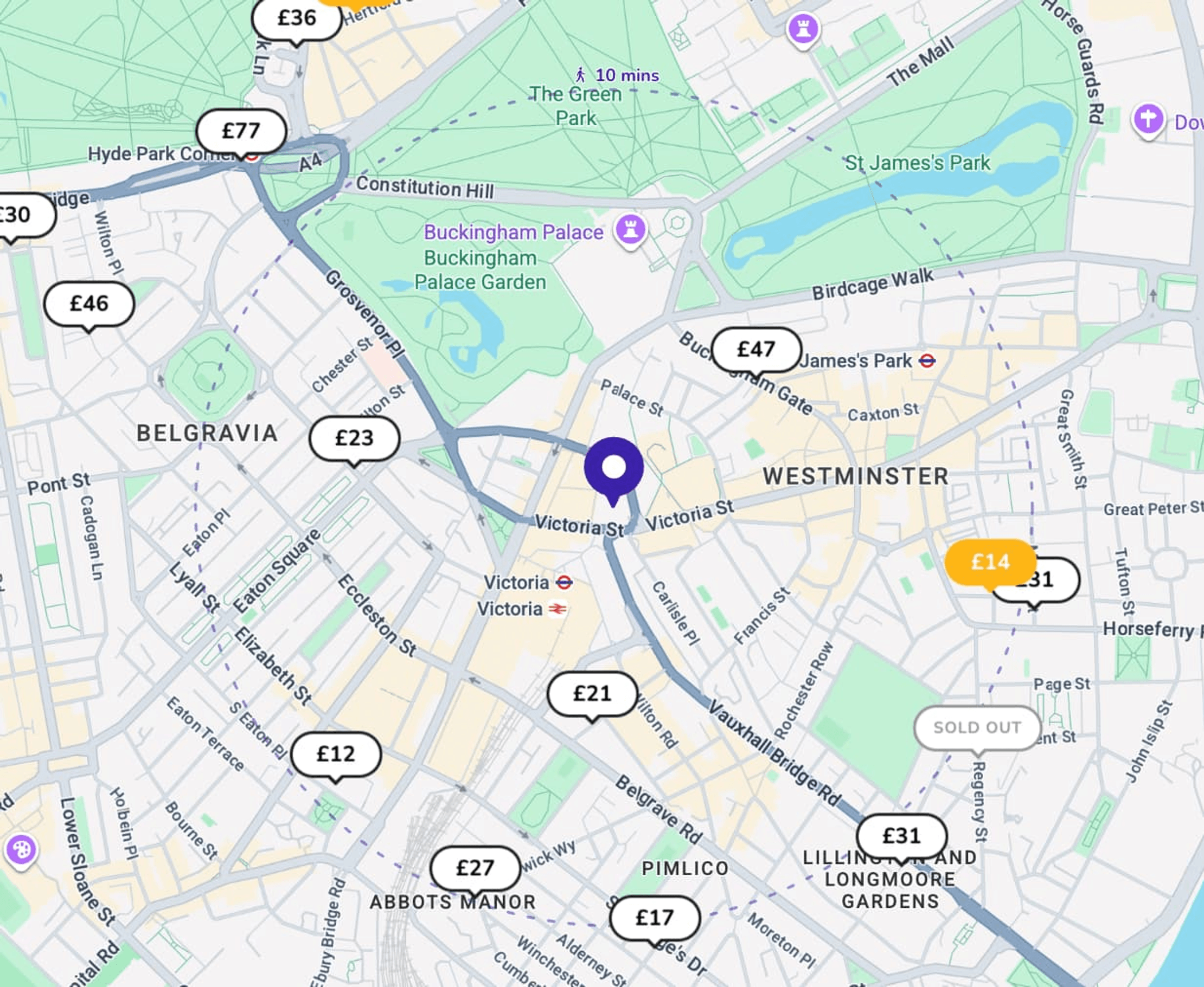 JustPark offers a wide selection of theatre parking options near the Victoria Palace Theatre. Options include private residential driveways for short stays, hotel and commercial car parks for added convenience, underground facilities for longer visits, and flexible Park & Pay spaces that let you start your session on arrival and extend it if needed.