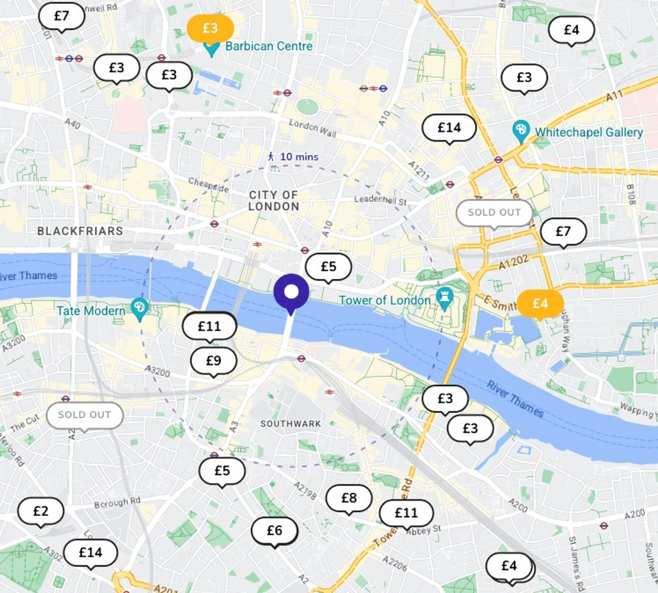 On-street parking is limited and highly regulated near London Bridge. Most areas operate under controlled parking zones (CPZs) with strict enforcement.