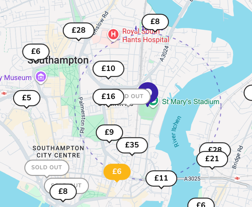 The easiest way to avoid stress is to book your St Mary’s Stadium parking in advance using the JustPark app or website.