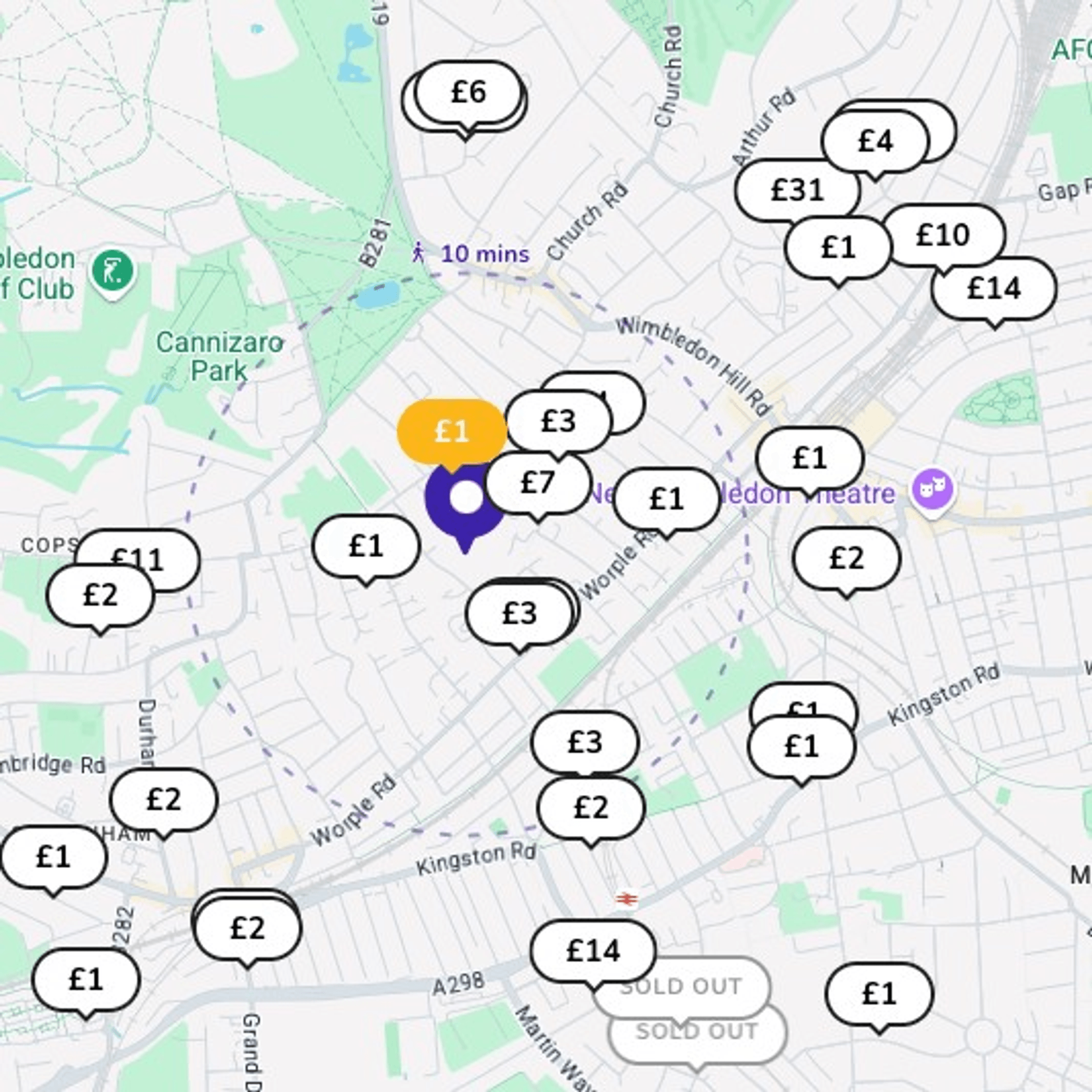 Most council-operated or commercial car parks nearby cost £30–£45 per day, and spaces are extremely limited. Wimbledon Park Road & Southfields also have paid on-street options but are very restricted during the tournament.