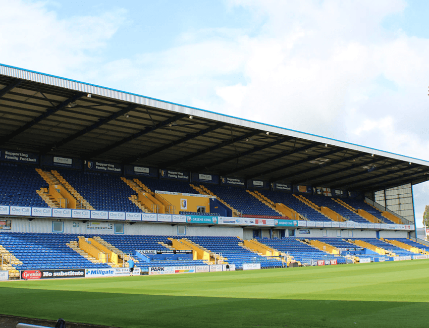 Field Mill can be reached via routes into Mansfield, with traffic increasing near the town centre on matchdays. Mansfield railway station is centrally located, with an onward walk or short bus or taxi journey to the stadium. Consider allowing extra time to avoid delays and pre-booking parking with JustPark for a smoother matchday experience.