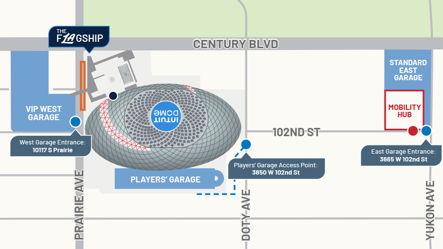 - Dedicated Bridge Access to Intuit Dome from the VIP West Garage.
